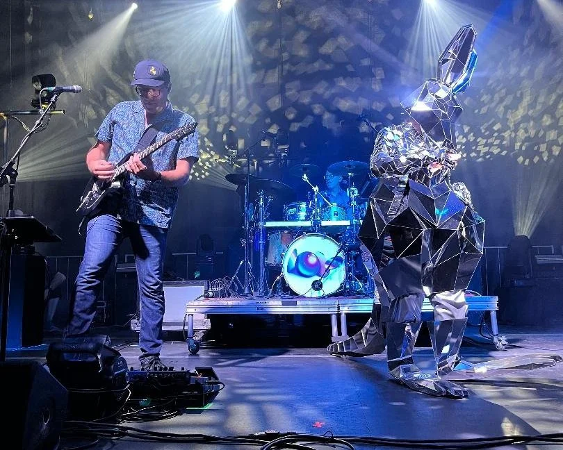 “Electric Orange” is one of the most played tracks off their latest album, How To Dream In Color. The song’s ’70s vibe with modern trimmings is undeniably catchy—and intelligent, as Lotus does. Well, it got going, smiles grew wider…and this kangaroo of a disco ball emerged from behind Luke Miller and his keyboards. Proceeding with caution behind guitarist Tim Palmieri, it stopped in the space in front of Mike Greenfield’s drumkit and to the side of bassist Jesse Miller’s modular synth. Then, in carefully playful motions, the kangaroo boogied and danced and grooved. Surreal? You bet, yet it all made sense.